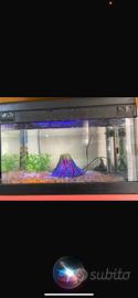 riscaldatore, luce led multicolori, vulcano con luce multicolori interna, termometro,pianta finta e ghiaietta da fondo.