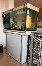 Acquario 200 litri, completo di mobile, pompa, riscaldatore, luci a led, mangiatoria, vegetazione, decori, ghiaia e accessori vari. Includo i pesci nati nell’acquario di facile riproduzione. No spedizione