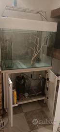 Vendo acquario 200litri. Completo di mobiletto, filtro esterno Pratiko 200 con tubi carico/scarico interni all' acquario, aeratore, termometro.