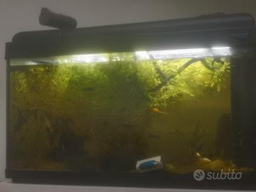 Acquario poseidon 200lt, in funzione e completo di tutto, accessori impianto co2, sifone x pulizia, distributore automatico, lampade x piante, e completo di molti abitanti,