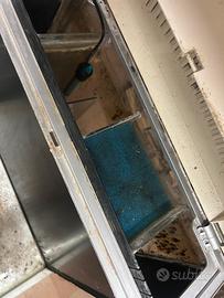 Completo di mobiletto e filtri. Misure in foto. Il vetro non è graffiato. La plafoniera va sostituita completamente. Da pulire e rinnovare. In disuso da diverso tempo.