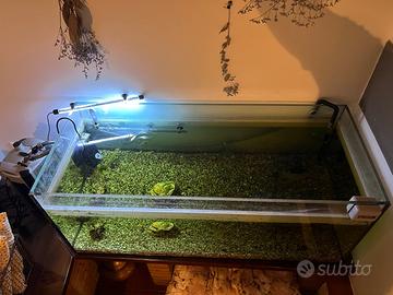 Acquario 300 litri con vetro temperato. Misura 120 lunghezza, 50 profondità e 50 altezza. Vendo insieme a filtro e riscaldatore per acquario.