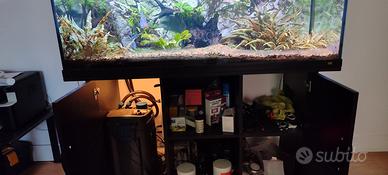 Acquario Juwell 300 litri, misure 120x50x62, con mobiletto. Filtro esterno Oase Biomaster Thermo, impianto CO2 automatico, luci led con programmatore alba/tramonto Sera, accessori vari per la completa manutenzione. Vendo completo di pesci: 1 maschio e 2 femmine di Cichlasoma Meeki riproduttivi e 1 femmina di Discus.