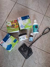 Vendesi acquario Yommy (dimensioni 38x36x23 cm circa), perfetto per chi vuole iniziare con un prodotto affidabile o per chi cerca una vasca di design compatta per casa o ufficio. Caratteristiche tecniche: Vetro Crystal Clear: Senza graffi o segni, pulito. Sistema Integrato: Coperchio con illuminazione LED, filtro/pompa inclusi e pronti all'uso, ghiaia, termometro e decorazioni (anfora e barile). 🎁 SUPER KIT OMAGGIO INCLUSO: Non vendo solo la vasca, ma tutto il necessario per farla funzionare al meglio con prodotti di qualità professionale (non quelli economici da supermercato). NB: il kit è un omaggio poiché parzialmente utilizzato (mancano 2 spugne e una bustina).