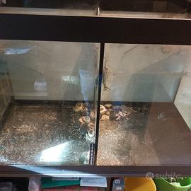 Vendo Acquario 400 litri in buono stato modificato x tartarughe con piattaforma. ha un divisorio al centro. Da ritirare a Domicilio Dimensioni Lunghezza cm 130 Prof. 50 H 66