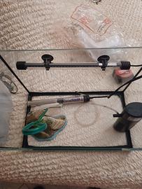Acquario con: filtro, riscaldatore, luce a led, retino, decorazione artificiale, ghiaia. SI CONSIGLIA IL RITIRO A DOMICILIO.