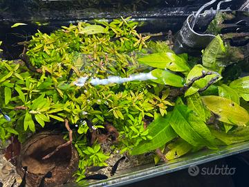 Vendo acquario 50 litri 60x30x30 come da foto. Vendo completo di tutto, aaredamento, terreno, piante, pompa, filtro e riscaldatore e soprattutto pesci che sono in continua riproduzione. Tutto perfettamente vivo e sano. Ovviamente non spedisco.