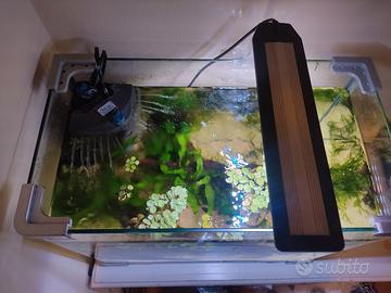 Acquario Blu BIOS Crystal con vetro curvo misure 47x26x37 cm maturo e completo di