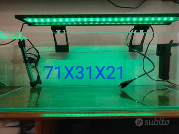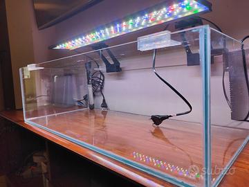 vendo per inutilizzo acquario modello shallow Circa 50 lt .completo di lampada riscaldatore filtro e supporti per coperchio ,il coperchio mi manca si fa fare dal vetraio tranquillamente.