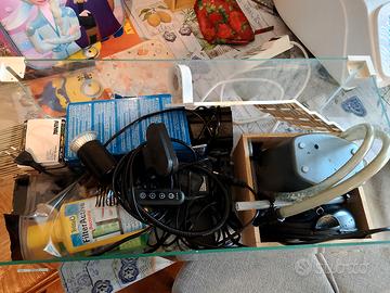 vendo acquario 60 litri per tartarughe d'acqua, ( misure 60x 30x20) dotato di griglia e vari accessori: riscaldatore 2 filtri perfettamente funzionanti ( uno interno e l'altro esterno più performante), lampada UV, pedana per tartarughe e diversi accessori e decorazioni per Acquario .. disponibile per altre info e foto in dettaglio.