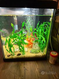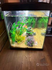 Completo di sassolini, piante di arredamento e pesci come in foto