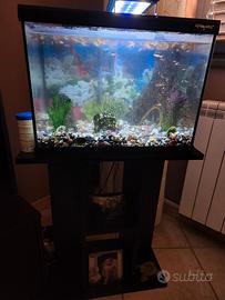 Vendesi acquario 60 lt, perfettamente funzionante comprensivo di: - circa 50 pesci guppy ( forse anche di piu); - pietre da fondale; - riscaldatore; - filtro; - luce a led bicolore (blu e bianca); - mobiletto. vendesi a prezzo stracciato in quanto solo il mobiletto costa nuovo 100 euro. Io vendo tutto ciò che ho scritto sopra a soli 100 euro (non trattabili), in quanto l acquario è solo da ritirare e mettere nella propria abitazione è fortunito e pronto in tutto.
