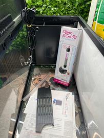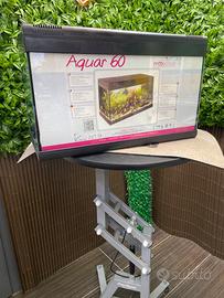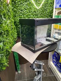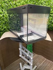 acquario con sistema dí illuminazione con lampada a risparmio d’energia, filtro biologico, pompa di riciclo 150/300 I/h, termoriscaldatore 50 W. Acquario compreso di scatola