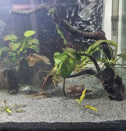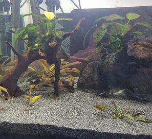 Vendo acquario con tutti vari materieli annessi. - Dimensioni 50cm x 35 cm x 35cm - sabbia JBL sansibar grana 0.6 - filtro aqua clear fluval ac 50 - Lampada - Temporizzatore - mangiatoia elettrica - 2 riscaldatori - termometro - 2 legni per acquario - 1 roccia - varie piante I pesci non sono in vendita ne in regalo...vendo per sostituzione con acquario piu grande