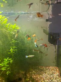 Acquario gia avviato e pronto, con pesci, vendo per mancanza di spazio ( pesci in regali) 70 lt circa, con pompa e filtro.