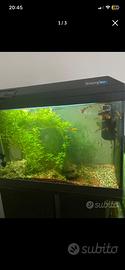 Acquario gia avviato, con luce, pompa di aria , sabbia, piante, filtro e pesci
