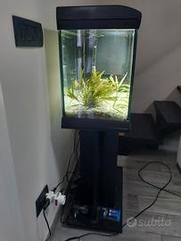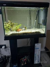 vendo acquario ancora attivo di 80 litri con tutti accessori e pompa di scorta più vari arredi e mangimi compreso mobiletto per passaggio ad uno più grande