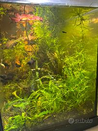 Presenti caridine rosse, 1botia, 1 lumaca killer e pesci pulitori