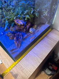 Vendo acquario misura 80x35x35 senza coperchio già avviato, lo vendo compraso di lampada Horizon wifi mangiatoia automatica, termostato e tantissimi altri accessori per la manutenzione (aspira fondo elettrico/lampada UV/ ecc).