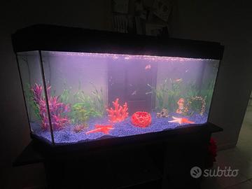 Acquario usato, perfettamente funzionante. Sempre ben tenuto e sempre fatto manutenzione. Ha solo il vetro un poco graffiato a causa dei sassolini.