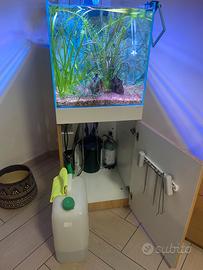 Bellissimo acquario AQPET cubo vetro exstrawite con molibetto misure 50x50 filtro esterno EHEIM ecco pro200 impianto cO2 lampada Ecosmart live XR30w G2 programmabile riscaldatore piu impianto acqua osmosi base per info 3493027139