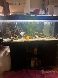 Acquario funzionante 400 litri. Completo di pesci , come da foto. due pompe esterne , riscardatori , mangiatoia automatica.