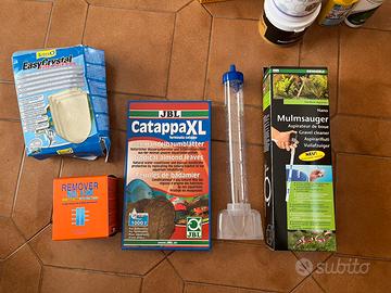 Prodotti vari per il mantenimento dell’acquario, dei pesci e delle piante (vedi foto).