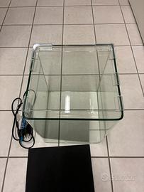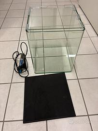 Acquario Amtra in vetro completo di coperchio in vetro, tappetino, riscaldatore e ghiaia fine color sabbia. Misure: 25x25x30 cm Non spedisco, solo ritiro. Prezzo: 35 euro