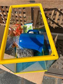 Vendo come da foto acquario praticamente nuovo completo di pompa per l’acuqa retino e accessori per info conttattatemi 3474269917