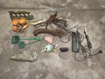 Vendo acquario Askoll da circa 100 litri (misure 80x30x40 cm), completo di coperchio con illuminazione integrata. La vasca è integra e robusta, ideale per chi cerca un acquario spazioso e di qualità. Insieme all'acquario, regalo un set ricchissimo di accessori per l'allestimento e la manutenzione, che permette di avere tutto il necessario per partire subito: Componenti tecnici: Filtro e riscaldatore inclusi. Manutenzione: 2 retini di diverse dimensioni. Arredi e decorazioni: * Elementi naturali: Radici e pietre ornamentali. Pietra in quarzo rosa e sassi in vetro. Oggetti decorativi: Anfore, barca e altri ornamenti vari. Specifiche Tecniche: Dimensioni: 80 cm (L) x 30 cm (P) x 40 cm (A). Stato: Struttura perfettamente stagna. I vetri necessitano di una pulizia ordinaria (calcare/alghe) per tornare alla trasparenza originale.