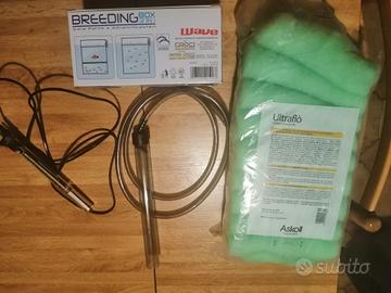 Acquario Askoll in ottime condizioni con sabbia e decorazioni (nave e conchiglia) con lampada interna Accessori: sala parto wavw, termometro, ovatta sintetica per filtri Askoll, pulitore sabbia, scalda acqua askoll