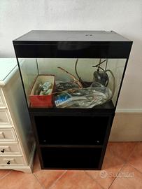 Dimensioni Vasca 56X36x43,5 68 litri. Acquario dismesso per perdita di interesse. Buone condizioni. Fatta modifica per applicare luce con proprio alimentazione. Dotato di filtro esterno Eden 501, riscaldatore, varie rocce e radici di mangrovia. Vendo tutto insieme. Con una pulizia accurata ed una rimessa in ordine è molto elegante poiché dotato del suo comodo mobiletto, semplice e fine nelle linee.