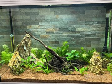 Acquario Askoll Pure Led Xl incluso di mobile bianco originale, capienza 120 Lt. Accessori: Pompa ricircolo, filtri, termoriscaldatore , illuminazione led con centralina alba/tramonto. Arredi: Rocce , radice e piante VERE. Include inoltre valigetta con attrezzi per la cura delle piante.