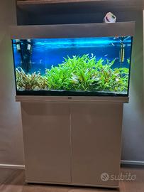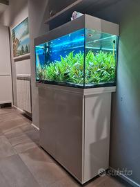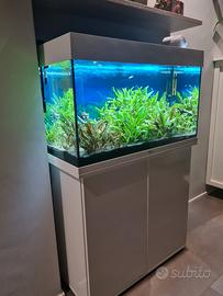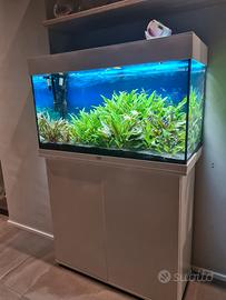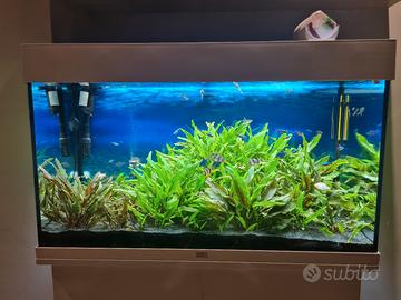Acquario completo di tutto pari al nuovo, con filtro esterno Pratiko 200 in funzione da 2 anni quindi molto maturo, più sistema co2 con bombola nuova ricaricabile con micronizzatore askoll, più mangiatoia automatica askoll e tutti gli accessori per la manutenzione