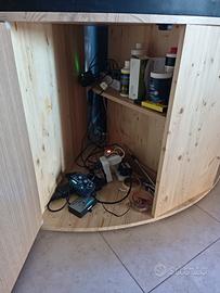 Vendo Acquario Askoll Tenerife Visus 295 angolare completo di mobiletto appena ricostruito di sana pianta in legno massello di abete. predisposto per il marino pertanto completo di plafoniera Sfiligoi da 6 neon T5 39w, sump predisposta con schiumatoio ATI Power Cone 200i, pompe di movimento di risalita e riscaldatore. Inoltre cedo tutti gli accessori e filtri sia per il marino che per la predisposizione acqua dolce. Capacità 300lt