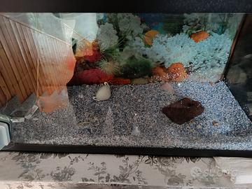 acquario 200 litri, con piccoli segni di usura (graffi sul vetro che si vedono in controluce), si cede con i 4/5 bancali di appoggio, acquario completo con filtri per l'ossigeno, pietre, piante finte e un tronco da 50 cm utile per rendere l'acquario ancora più vivo. prezzo trattabile