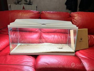 Cedo acquario Ciano praticamente come nuovo per passaggip ad acquario piu grande.L’acquario é stato utilizzato solo 6 mesi ,pari al nuovo ,completo di pompa di filtraggio,termostato,luce led bianca e fondale sabbioso naturale .