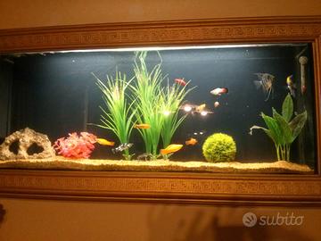 vendo splendido acquario a muro da 70 litri completo di accessori molto bello e particolare a 400 euro. misure : altezza 48.50, profondit 17, larghezza 110.