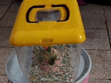Acquario in plastica rettangolare.