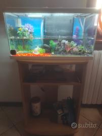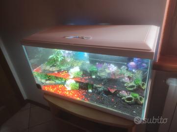 Causa trasferimento per lavoro vendo acquario di un anno completo di: termoriscaldatore, pompa, filtri, pompa bollicine a 2 vie, luce led, termometro acqua digitale esterno e mobiletto con ruote porta acquario. Mis. 60 largh, 30 profondità, 35 alt. Mobile stesse misure larghezza profondità e altezza 78cm. Non rispondo a chiamate ma solo whatsapp, grazie.