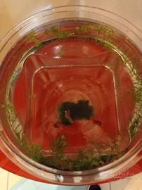 Vendo boccia acquario di plastica di circa 4 litri, con 2 medaka di 2 cm bianchi, 3 lumache planorbelle arancioni, 2 steli di ceratophillum demersum e una cladofora insieme a 10 euro.