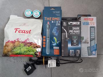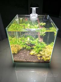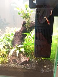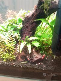Vendo acquario caridinaio Crystal Red Unica caridina in vasca. Viene venduto acquario completo di circa 200 caridine Crystal red, piante, legno, pietre, fondo allofano ecc ..l acquario è un Newa tank 30. quindi barra a led ordiginale. Viene compreso nel prezzo lampada LED amtra Vega, filtro Shark pro nano 320 Sicce, riscaldatore 25W, sacco 2Lt di fondo allofano feast