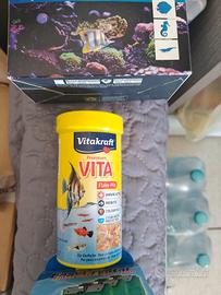 vendo acquario con neon bianco e blu con tutto il kit di filtraggio con ricambi di carboni attivi e filtri per l'acqua più mangime per pesci, l'accessorio per il travaso dell'acqua, il retino e kit pulizia vetro. compreso mobile valore di mercato 350€