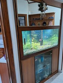 acquario triangolare 200 litri 89x89x125 altezza 65 cm perfettamente funzionante tutto compreso anche il mobile