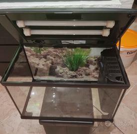 Vendo acquario Cayman 75 LT completo: sfondo acquario con due versi, illuminazione a neon T8, filtro interno completo di tutto il necessario, timer incorporato collegamento su un unico filo, dimensioni 60 x 35 x 45 a 60 euro non trattabili, non spedisco il acquario e in perfette condizioni non perdere tempo non tratto sul prezzo