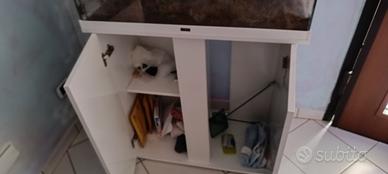Causa mancanza tempo....vendo acquario ciano completo di mobiletto misure larghezza 81cm altezza 140cm profondità 40cm... Unitamente allo stesso lascio vari oggetti utili all uso/ manutenzione dello stesso....
