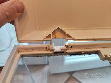 i due ganci laterali del coperchio sono rotti, quello centrale è intatto, il coperchio cmq si alza e si abbassa bene, completo del box nero per mettere all interno la pompa, i due filtri e il filtro nero grande.