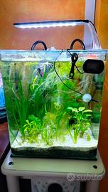 acquario amtra 30 litri con coperchio in vetro e tappetino.