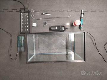 Vendo, causa inutilizzo, acquario da 40 litri completo di luci led (alcuni non funzionanti) filtro, riscaldatore, mangiatoia automatica, set per la cura delle piante e del fondale, spazzola magnetica per pulizia vetri e retino.
