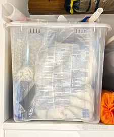 Vendesi acquario di costruzione artigianale misure 50x35x45h da 85 litri, completo di sistema filtrante a cascata con pompa e riscaldatore e luce a led. Si vendono inoltre tutta una serie di attrezzature aggiuntive (pompa di riciclo, ossigenatore, vaschetta nursery, materiale filtrante, cibo vario, etc) compreso nel prezzo.